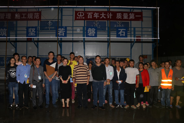 晚上七時許,博泰花園項目部已擠滿了參會的工人。八點,安全教育專題會正式開始。工程部人員通過幻燈片展示,結合實際案例,向現場的工人進行詳細講解。