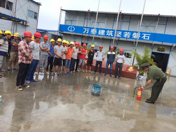 為提高全員消防意識(shí),增強(qiáng)工人在緊急情況下的應(yīng)變能力和自我防護(hù)能力,加強(qiáng)工地消防安全管理,強(qiáng)化工地自查自糾工作機(jī)制,有效消除火災(zāi)隱患,營(yíng)造一個(gè)安全文明的施工環(huán)境。8月29日上午,海南萬泰建筑工程有限公司邀請(qǐng)了瓊中縣消防大隊(duì),在瓊中加釵農(nóng)場(chǎng)加鑫商業(yè)廣場(chǎng)項(xiàng)目部開展了意義重大的消防演練活動(dòng),帶領(lǐng)項(xiàng)目工人學(xué)習(xí)消防知識(shí)技能。