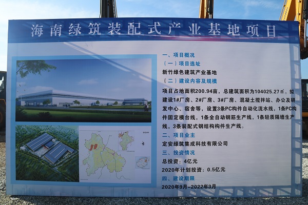此次開工建設的海南綠筑裝配式產(chǎn)業(yè)基地項目,選址定安縣新竹綠色建筑產(chǎn)業(yè)基地,位于海南中線高速高路新竹出入口東側(cè)、省道云文線北側(cè),在交通便利上有著無可比擬的優(yōu)勢。項目總占地面積200.94畝,總建筑面積104025.27㎡,總投資4億元,擬建設1#廠房、2#廠房、3#廠房、混凝土攪拌站、辦公及研發(fā)中心、宿舍等,設置3條PC構件自動化流水線,1條PC構件固定模臺線,1條全自動鋼筋生產(chǎn)線,1條輕質(zhì)隔墻生產(chǎn)線,3條裝配式鋼結構構件生產(chǎn)線,2020年計劃投資0.5億元。項目建成后將大大提升定安縣新竹綠色建筑產(chǎn)業(yè)發(fā)展的規(guī)模效應和產(chǎn)業(yè)集聚效應,逐步建成具有一定規(guī)模的綠色建筑產(chǎn)業(yè)基地。