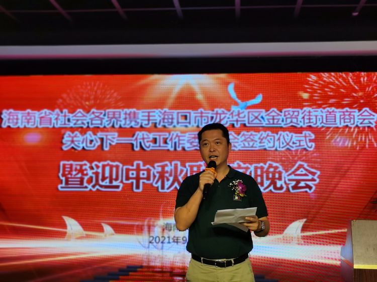 海南省對外經濟發展促進會莫壯才會長上臺致辭,先是以一段精彩的英語發言對在座的各位來賓致以中秋節問候,同時分享了自己對關心下一代工作的見解并希望各位來賓能夠積極地發動宣傳這一公益事業,最后,莫壯才會長由衷地祝愿各企業之間能夠友好合作,共同助力海南自貿港建設。