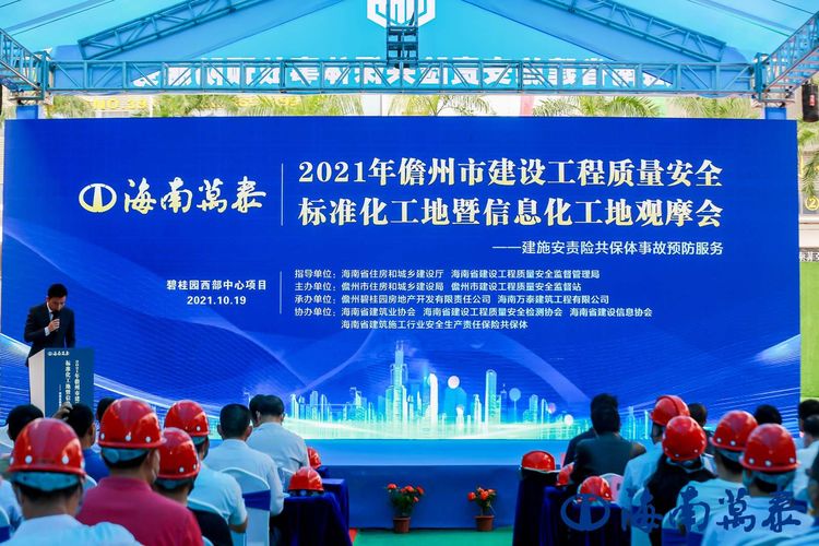 為適應(yīng)海南自貿(mào)港建設(shè)高質(zhì)量發(fā)展要求,進一步促進海南萬泰項目管理工作,提升建設(shè)工程質(zhì)量安全管理水平,構(gòu)建一個互相交流和學(xué)習的平臺,2021年10月19日上午,在海南省住房和城鄉(xiāng)建設(shè)廳及儋州市人民政府的大力支持下,由儋州市住房和城鄉(xiāng)建設(shè)局主辦,海南萬泰建筑工程有限公司承辦的“2021年儋州市建設(shè)工程質(zhì)量安全標準化工地暨信息化工地”觀摩會在海南萬泰儋州碧桂園·西部中心項目成功舉辦。海南省住建廳、省質(zhì)安局、儋州市人民政府、儋州市住建局等行政主管部門負責人,部分在建項目的建設(shè)、施工、監(jiān)理等單位代表近400人參加了本次觀摩會。
