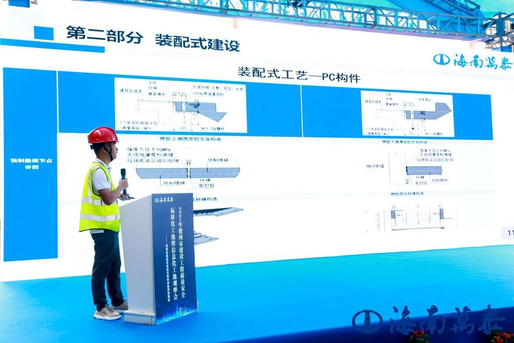 碧桂園儋州片區(qū)負責人牛孝峰分享了建設(shè)工程質(zhì)量安全標準化暨裝配式建造工藝,并代表碧桂園海南區(qū)域表態(tài),定將做好裝配式建造推廣工作,大力提升發(fā)展裝配式項目的質(zhì)量和效益,為海南自貿(mào)港建設(shè)扛起我們的責任擔當。