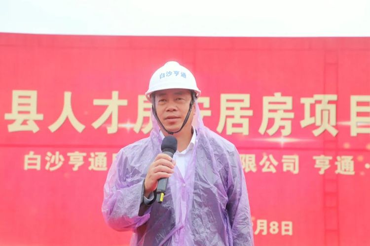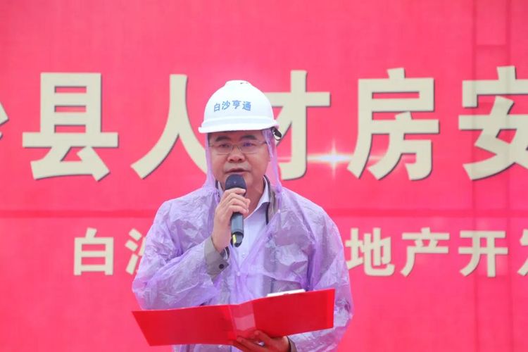 隨后,縣委常委、縣政府黨組副書記陳揚洲正式宣布白沙人才房安居房項目——亨通·南湖花園項目正式開工。此外,陳揚洲、梁定雄等相關領導還為項目開工培土奠基,預祝項目開工大吉。