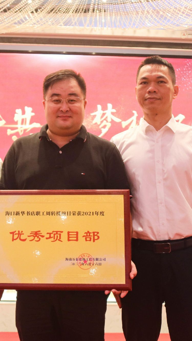 各位嘉賓領(lǐng)導(dǎo)的講話內(nèi)容深入人心,頒獎環(huán)節(jié)更是令人激動。海南萬泰始終堅(jiān)持創(chuàng)精品工程,更是積極推動黨建引領(lǐng)促進(jìn)企業(yè)發(fā)展。在顏利副總的主持下,經(jīng)公司考評小組綜合評定,評選出2021年度“優(yōu)秀黨務(wù)工作者”“優(yōu)秀項(xiàng)目負(fù)責(zé)人”“優(yōu)秀項(xiàng)目部”,特在本次慶典活動上進(jìn)行頒獎,海南萬泰黨支部副書記孟晨榮獲“優(yōu)秀黨務(wù)工作者”,海口新華書店職工周轉(zhuǎn)樓項(xiàng)目部榮獲“優(yōu)秀項(xiàng)目部”,張濤榮獲該項(xiàng)目“優(yōu)秀項(xiàng)目負(fù)責(zé)人”。