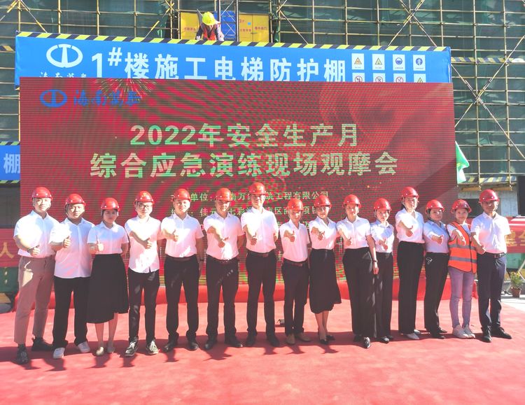 為貫徹落實習總書記關于安全生產重要論述,以黨建引領促進安全生產,全面提升項目質量管理水平,增強安全責任意識,按照上級相關主管部門對開展“安全生產月”活動的通知要求,結合第21個全國“安全生產月”,2022年6月28日,海南萬泰建筑工程有限公司在七彩瀾灣南區商業項目部成功舉辦了2022年“安全生產月”綜合應急演練觀摩會。省住建廳安全行業專家劉輝輝,澄邁縣住房和城鄉建設局莫丁,澄邁縣應急管理局冼厚霖,澄邁縣質監站王廣彬,中豪威爾房地產有限公司甲方代表孫志明,海南藍城君潤科技有限公司副總經理陳自衡、工程部經理張凡春,杭州巨烽建設工程項目管理有限公司總監朱冬風,公司常務副總經理顏利、副總經理吳坤芳等相關人員參加本次觀摩會。澄邁縣老城消防救援特勤站、同和醫院友情協助開展本次綜合應急演練。