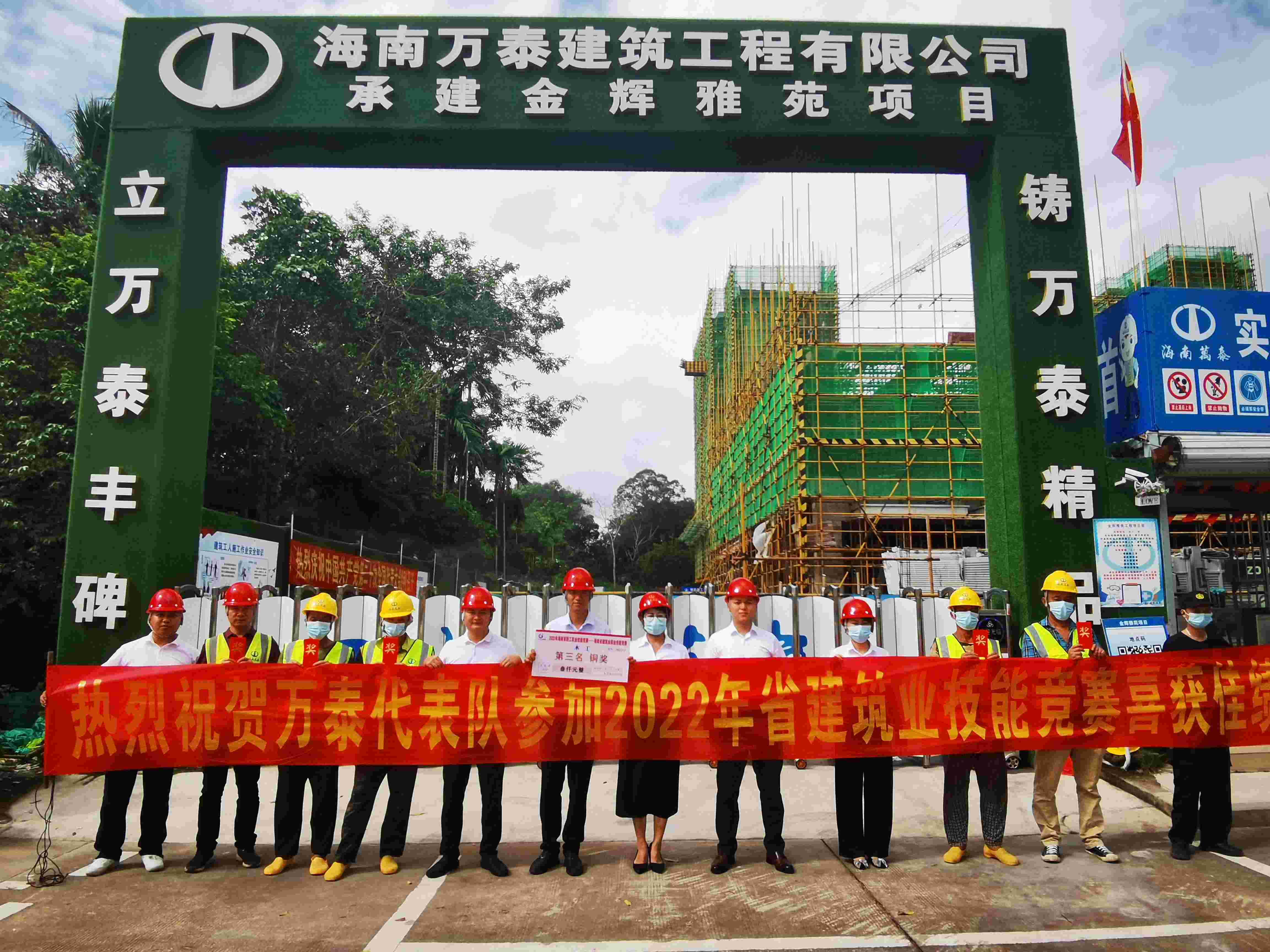 為了學(xué)習(xí)貫徹黨的二十大報(bào)告,把二十大精神落實(shí)到推動(dòng)企業(yè)高質(zhì)量發(fā)展過(guò)程中,表彰先進(jìn),樹(shù)立典型,進(jìn)一步增強(qiáng)員工的自豪感、集體榮譽(yù)感及團(tuán)隊(duì)凝聚力,2022年11月18日,在省建設(shè)工會(huì)的支持下,海南萬(wàn)泰公司組織人員到公司承建的瓊海金輝雅苑項(xiàng)目部,對(duì)在參加2022年省建筑業(yè)職業(yè)職工技能競(jìng)賽中榮獲木工三等獎(jiǎng)的孫仲文團(tuán)隊(duì)進(jìn)行了表彰,并召開(kāi)了座談交流會(huì),會(huì)上大家學(xué)習(xí)了二十大報(bào)告有關(guān)章節(jié),分享交流比賽心得,以此樹(shù)立先進(jìn)標(biāo)桿,鼓舞工人干勁。公司黨支部、工會(huì)、工程部以及金輝雅苑項(xiàng)目部管理人員及一線工人等參加本次活動(dòng)。