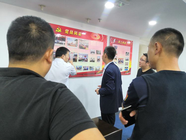 各位領(lǐng)導(dǎo)參觀了我公司的辦公環(huán)境,在參觀過程中領(lǐng)導(dǎo)對(duì)公司的黨建文化及公司文化給了高度贊許。