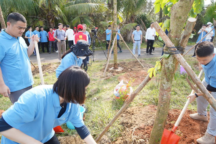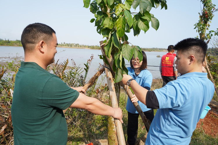 活動當天,艷陽高照,晴空萬里,大家紛紛拿著鐵鍬,拎起水桶,以十足的干勁與熱情積極投入到植樹播種中,挖坑、放苗、扶正、填土、澆水,一氣呵成,全然不顧揮灑的汗水。在大家的分工合作下,一棵棵新栽苗木迎風挺立,給初春的大地增添了盎然的生機和蓬勃的朝氣,形成了一道亮麗的風景線。海南萬泰公司黨支部書記曹珊珊及部分黨員紛紛表示,將會把本次實踐活動的所學所感融入到今后工作與生活中,不斷提升自我,努力為建設美麗新海南不斷地添磚加瓦。
