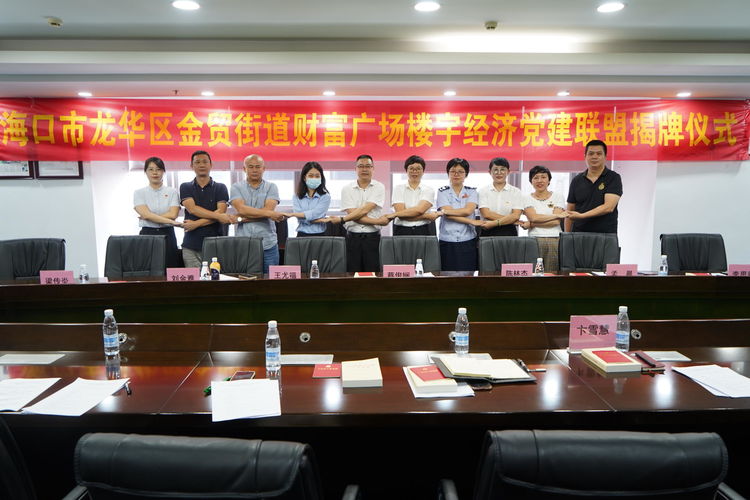 海口市龍華區金貿街道財富廣場樓宇經濟黨建聯盟由國家稅務總局海口市龍華區稅務局第一稅務分局黨支部、海南萬泰建筑工程有限公司黨支部、龍華區金貿街道商會黨支部等11個黨組織組成,資源整合、優勢互補、共享優惠政策、共同發展黨建平臺。
