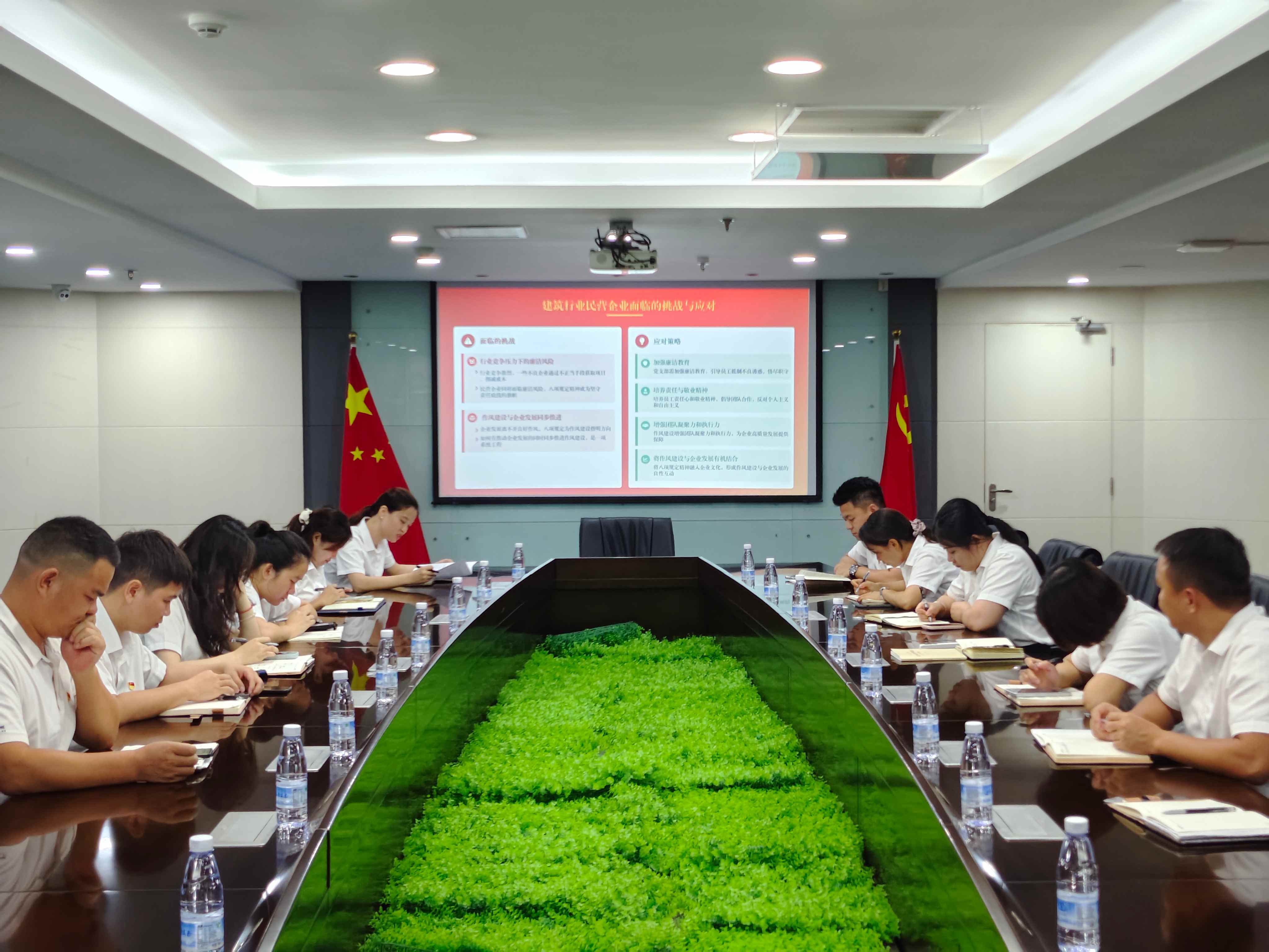 會議伊始,主持人闡述了本次書記講黨課及學習的意義,強調了深入貫徹中央八項規定精神對于企業健康發展的重要性。隨后,黨員林慧、莫方龍分別領讀了《習近平關于加強黨的作風建設論述摘編》相關章節內容。通過學習,讓與會人員對習總書記關于黨的作風建設的論述內涵有了更深入的理解。