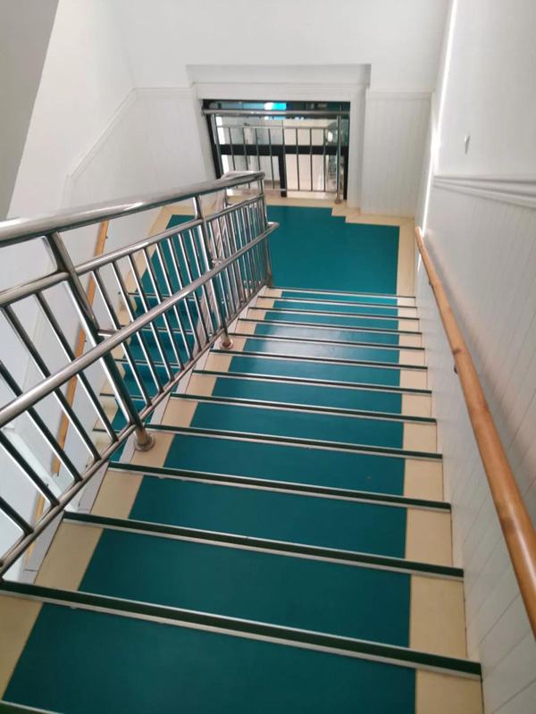 樓梯色彩搭配活潑亮眼,并在階梯上設踏步護角,雙側除了成人扶手還特設兒童專用扶手,加強安全性。