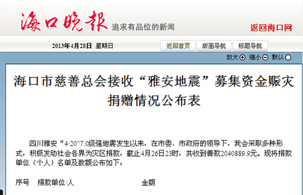 “雅安地震”募集資金賑災捐贈