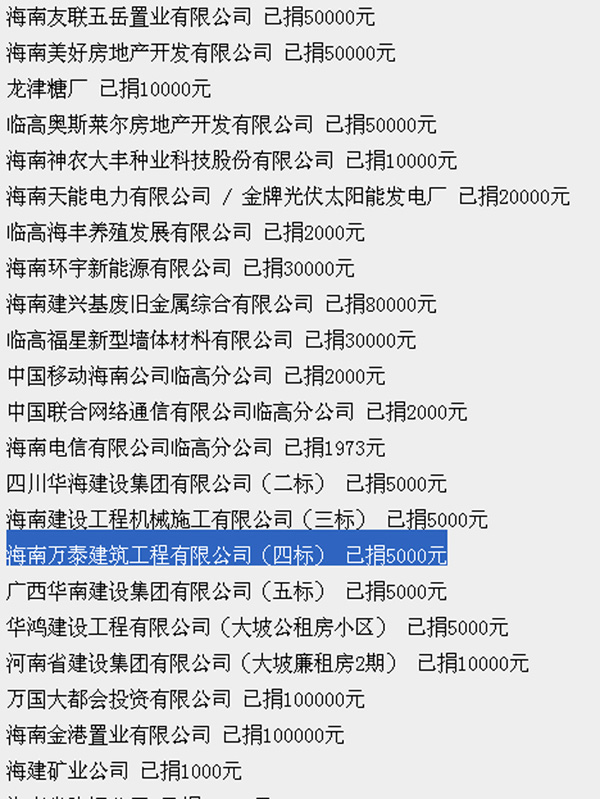 2013年臨高縣“愛心助學·陽光行動”企業捐款