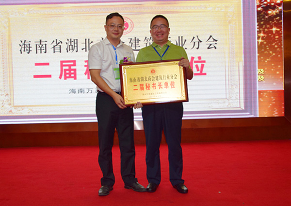 大會選舉出建筑分會二屆領導班子及會長、副會長、監事長、秘書長單位。海南萬泰董事長張小龍順利當選海南省湖北商會建筑行業分會秘書長。大會還為本屆會長、副會長、秘書長、監事長單位舉行授牌儀式。