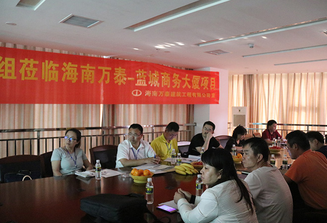 2017年3月16日,由海口市建筑業協會專家組 、海口市建設工程質量安全監督站組成的評審小組對萬泰承建的藍城商務大廈項目進行“椰城杯”(市優)建設施工優質樣板工程的現場評審。